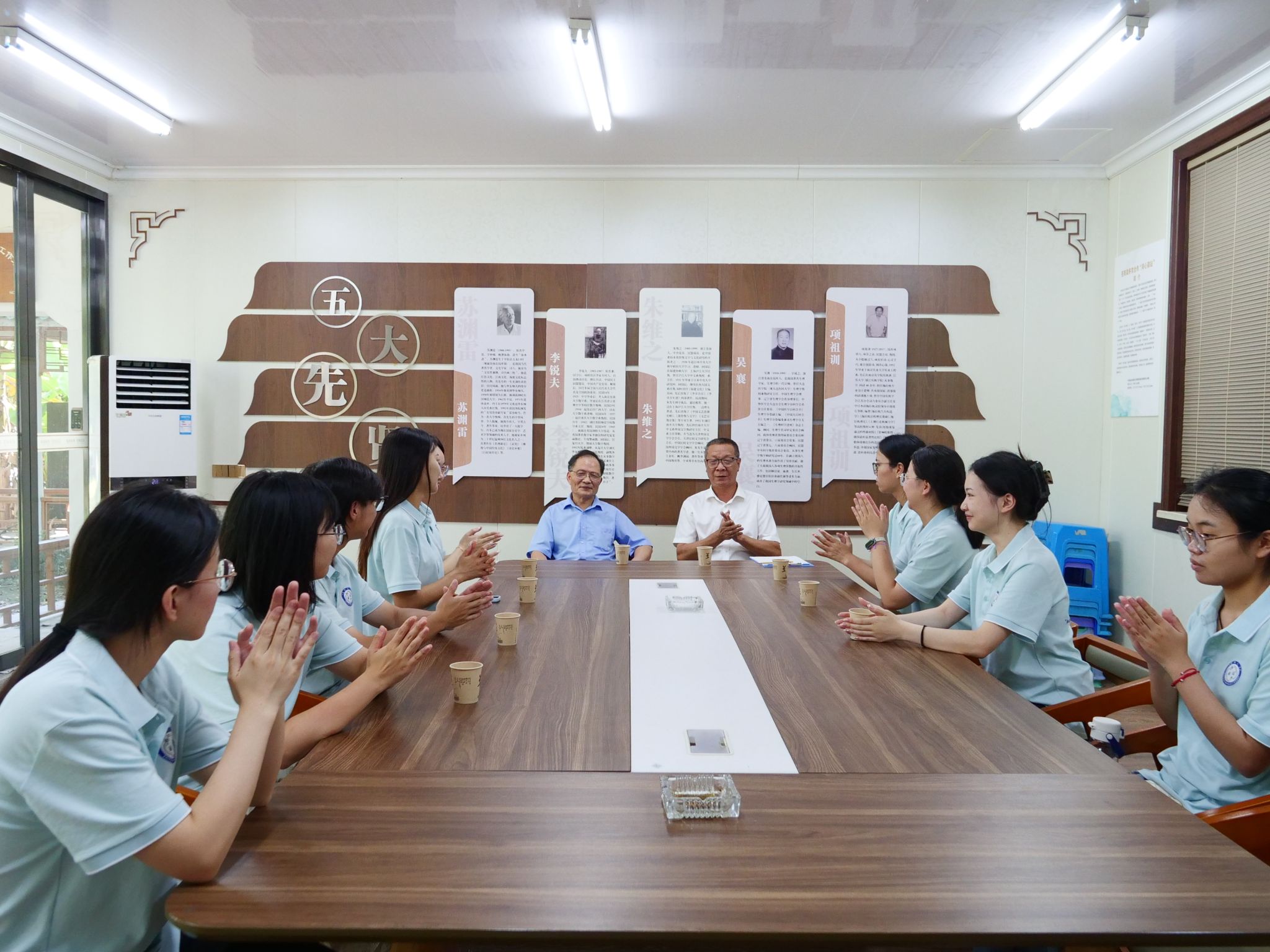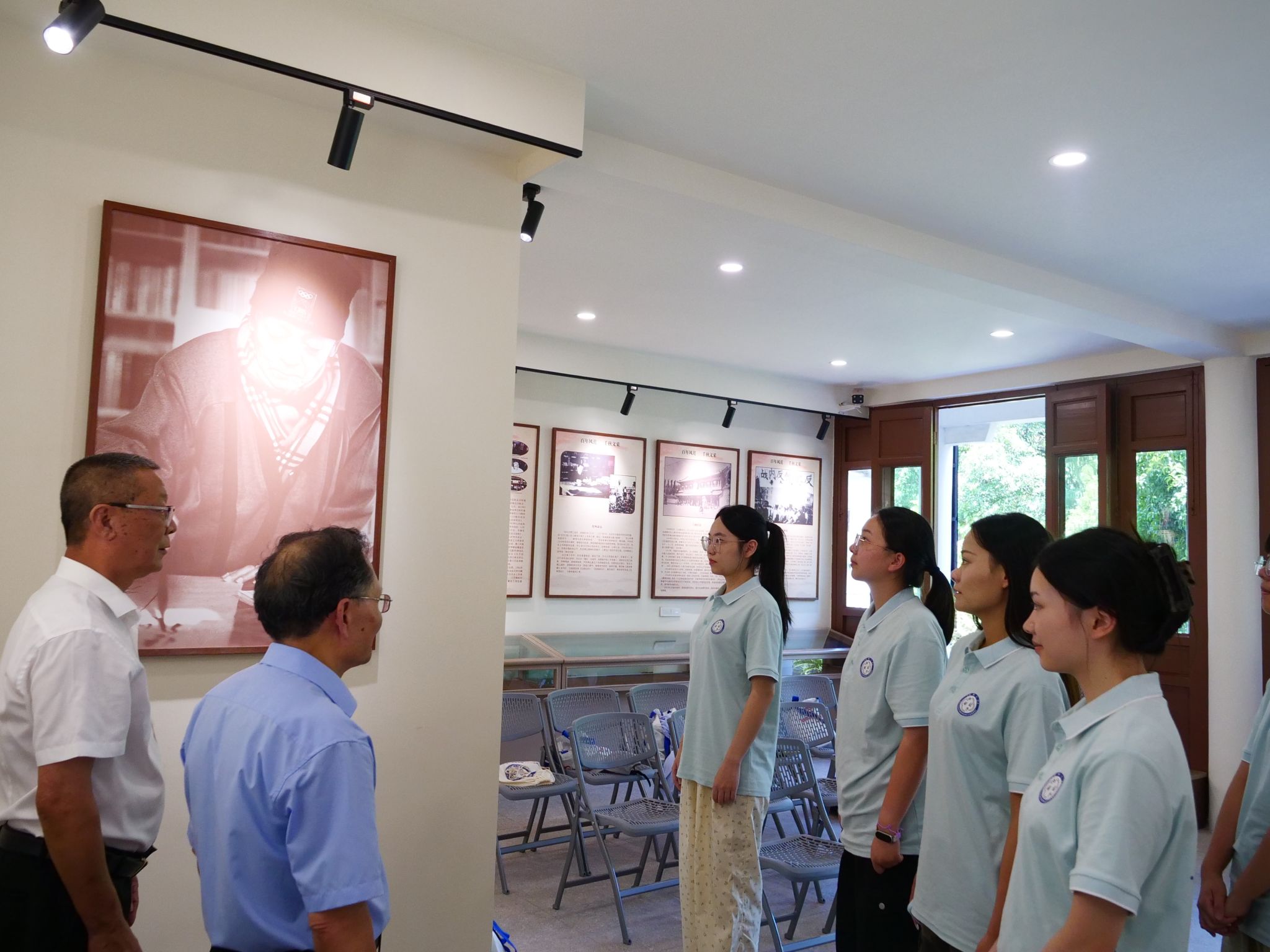 苍南县蛮话文化研究发展中心坐落于绿意盎然的公园之中,自然景观与古朴建筑相得益彰,营造出宁静雅致的氛围。身为苏渊雷纪念馆馆长的王斌老师热情接待了实践队队员们,并带领队员们参观了位于蛮话文化研究发展中心旁的苏渊雷纪念馆。“苏渊雷是诗人、战士,也是学者。蛮话方言区域人杰地灵、贤才辈出,具有深厚的人文底蕴。”