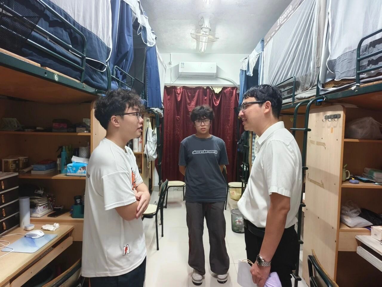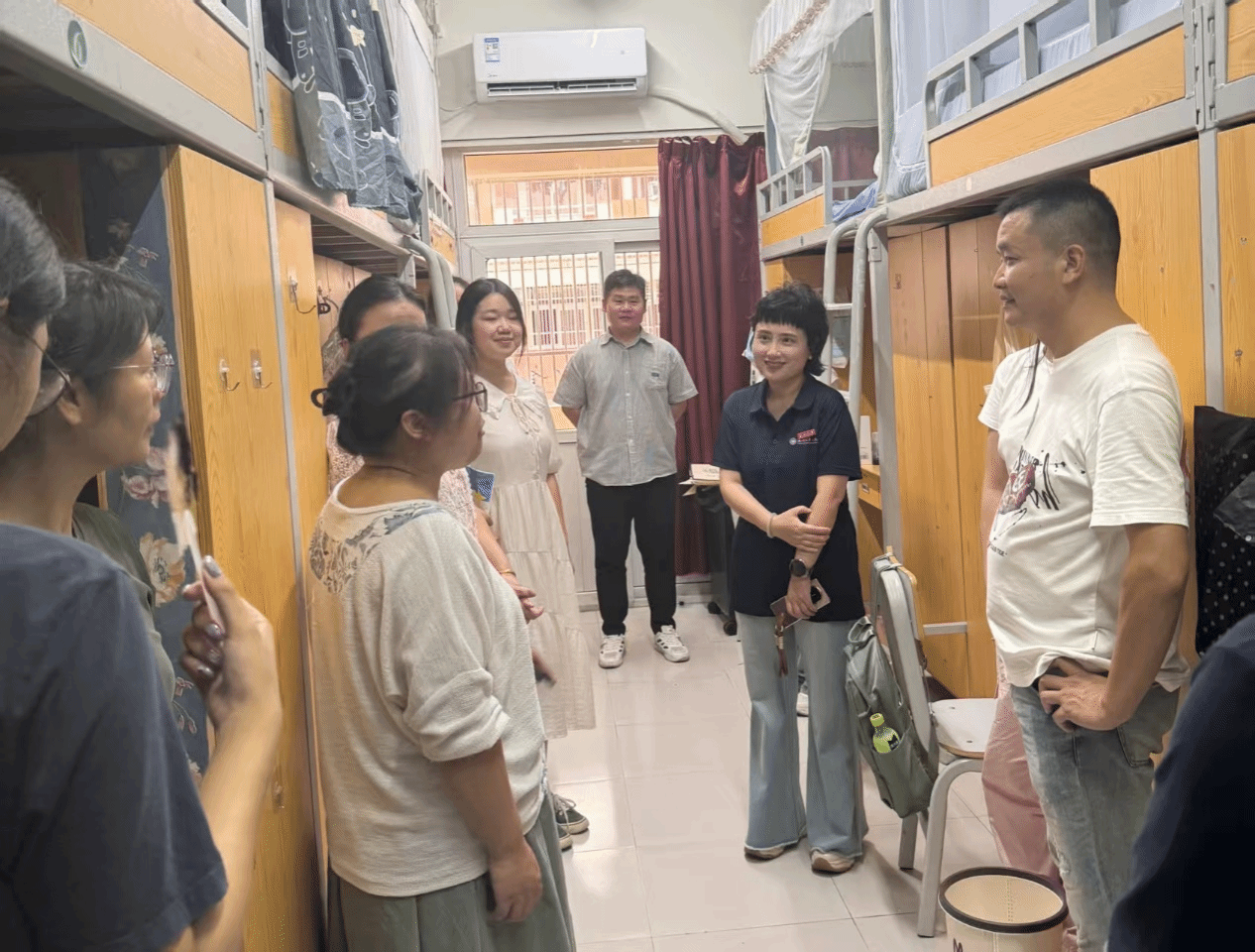 在校长走访之后,学院领导班子、各班班主任以及辅导员团队同步深入新生寝室,开展走访与交流工作。他们逐一走进全院每一间新生寝室,与新生及陪同的学生家长进行密切沟通,详细了解新生的入住情况与适应状态,为他们解答关于大学学习生活的疑问,让新生和家长切实感受到学院的关怀。