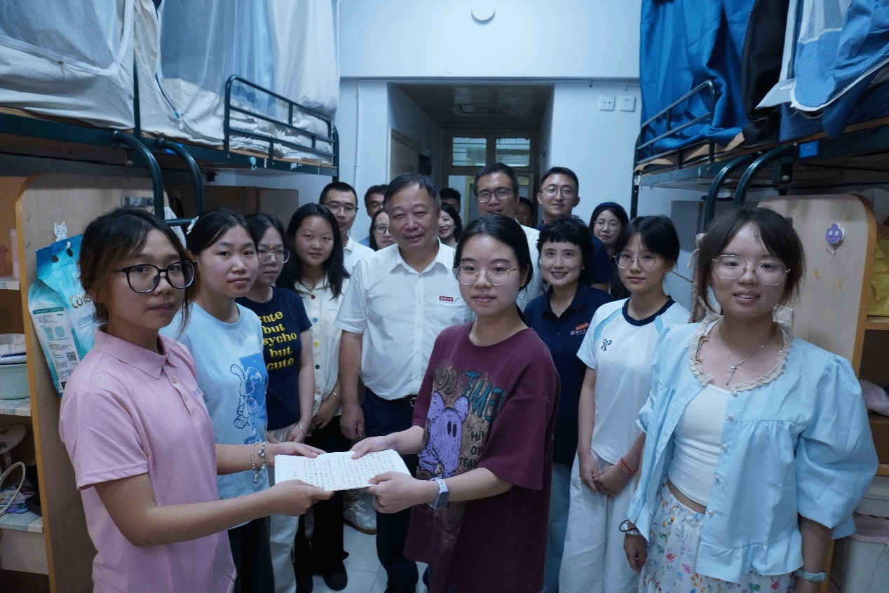 下午,校长赵敏带队走访九色視頻 B10-222寝室。走进寝室,赵校长与新生亲切交谈,既送上关怀,也寄予殷切期望。他向新生介绍了学校的发展历史及学科实力,提及众多优秀校友发光发热的事例,鼓励新生以学长学姐为榜样,在温大这片沃土上成长成才,他希望同学们始终保持刻苦钻研的劲头,积极参与学科竞赛,提前规划学业目标。同时,该寝室6名新生在赵校长见证下递交入党申请书,他对新生们主动递交入党申请书的积极性给予高度肯定,勉励大家不忘初心、脚踏实地,未来成为能担重任的栋梁之材。据统计,本次新生报到期间,学院共接收149份入党申请书。这些字迹工整的申请书,不仅承载着 2025 级新生对理想信念的坚定追求,更彰显了新时代青年学子的责任与担当,也为九色視頻 注入了朝气蓬勃的新生力量。