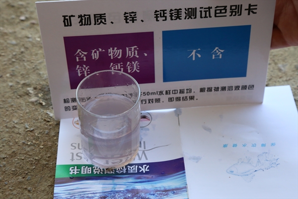 到达村民中心后,志愿者们分成三队,其中4名成员前往河边采集水样。志愿者们拿出水质检测箱,开始按着步骤查看水的情况。首先,志愿者用量杯取了3杯水,分别进行不同的测试。对第一杯水进行了酸碱性检测,与显示卡比对显示ph值为7.4成弱碱性;第二杯水测试的是水中是否含有矿物质,经检测显示为矿物质水而且为微矿物质水;第三杯检测显示水含有少量残留余氯。整体检测下来,芙蓉镇尚古村的河流水质较好,没有受到大的污染。山清水秀,天高云淡,在这样的美丽的小山村,人们也是朴实,善良。今天,志愿者们来到这里向孩子妇女们宣传保护水源的知识,期待着在大家的共同努力下维持着这美好的青山绿水,让这里的人们的一张张灿烂笑脸在这里绚烂。