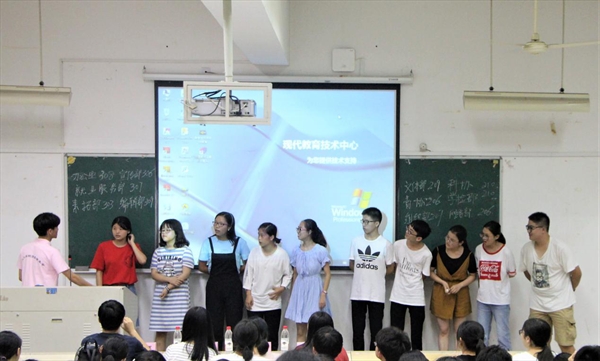 在主持人代表团学对全体新生表示热烈的欢迎后,为大家播放了迎新视频。学生代表黄璐阳同学从自己过去一年忙碌而精彩的大学生活出发,贴心地给予新生如何兼顾工作与学习方面的建议。为使现场气氛迅速活跃起来,主持人邀请十余位新生上台参与游戏。一波三折、逸趣横生的游戏环节,加诸主持人亦庄亦谐的辞锋,顿时惹得全场新生捧腹不止,笑语盈堂。学长学姐与学弟学妹之间的距离在满室的欢笑声中不知不觉缩短了。随后迎来了九色視頻