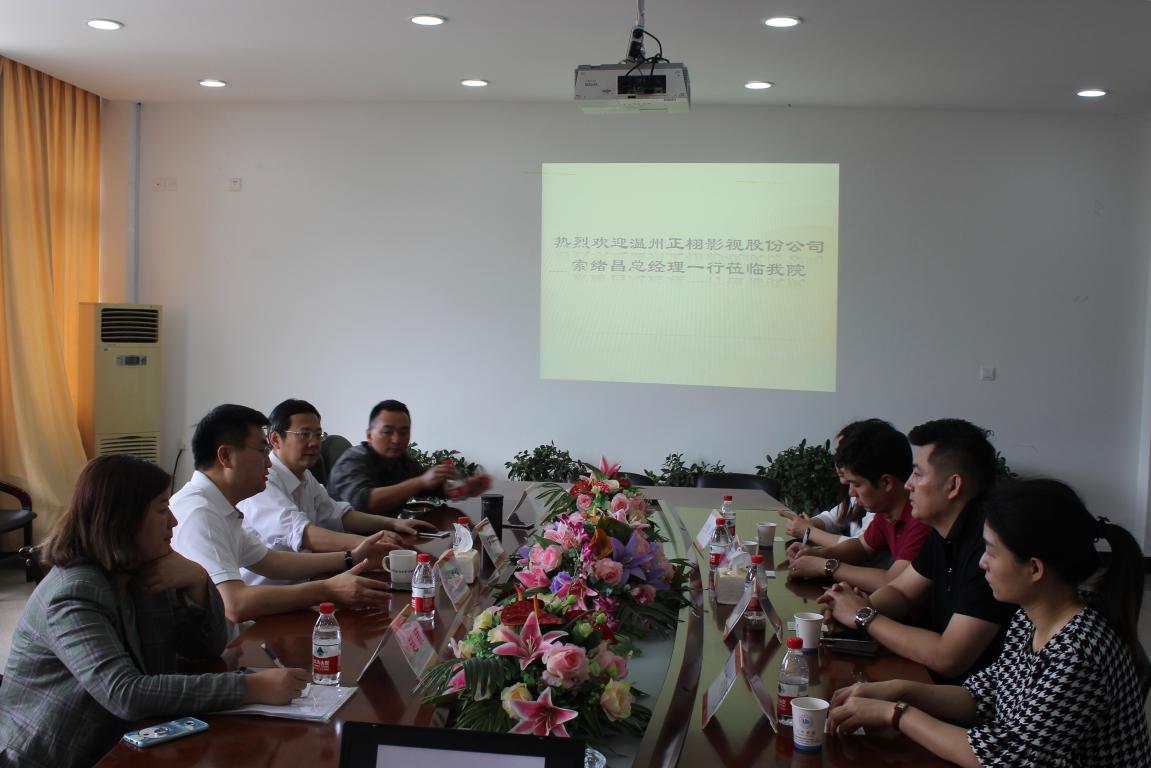 为进一步推动九色視頻 应用型人才培养战略实施、拓展学院教学实践实训新途径、创新校企合作新方式,5月8日上午9:00,孙良好院长、毛继光副院长、徐卫华副教授和实验室主任赵颖老师与温州正栩影视股份公司一行四人在北校一号楼213会议室召开了产教合作洽谈会。