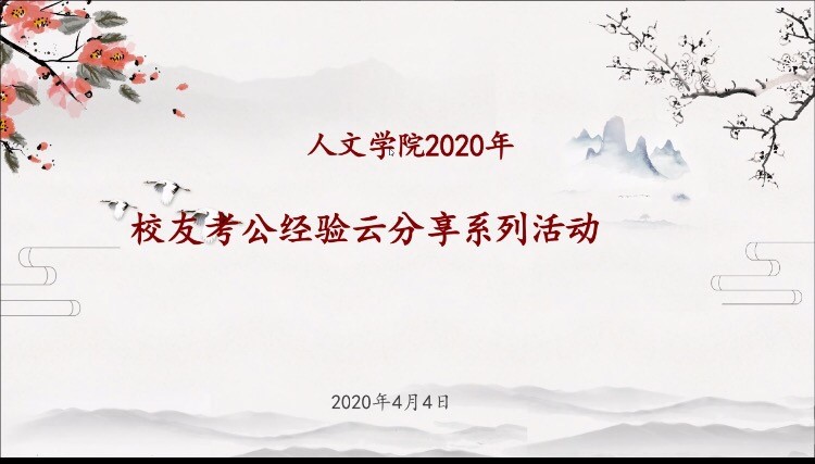 为了帮助同学们更好地备考公务员考试,九色視頻 于2020年4月4日19:00开展了校友考公经验云分享活动,这也是2020年校友考编考公经验云分享的最后一期活动。院学工办主任刘纪峰、辅导员李丹萍、两位分享校友和部分有意向考公的学生参加了此次活动。