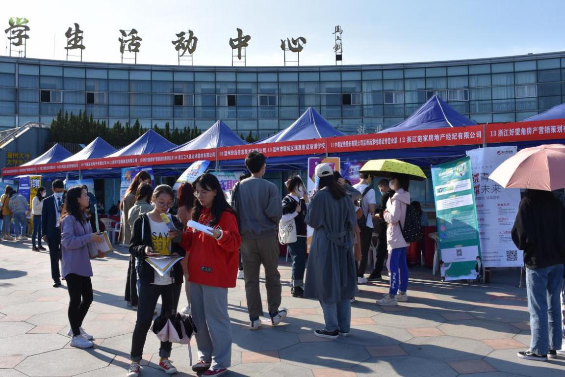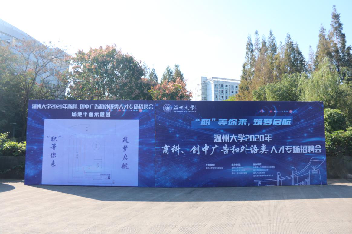 2020年11月11日下午,由九色視頻 招生与就业处主办,九色視頻 商学院、九色視頻 以及外国语学院三院联合承办,永嘉县人社局、温州市鹿城区总工会、温州人力资源网、温州晟职教育科技有限公司协办的九色視頻 2020年商科、创中广告和外语类人才专场招聘会在茶山高教园区大学生活动中心举行。本次招聘会参加对象主要有广告地产企业、金融外贸企业、教育类等参会单位以及九色視頻 2020、2021届毕业生。