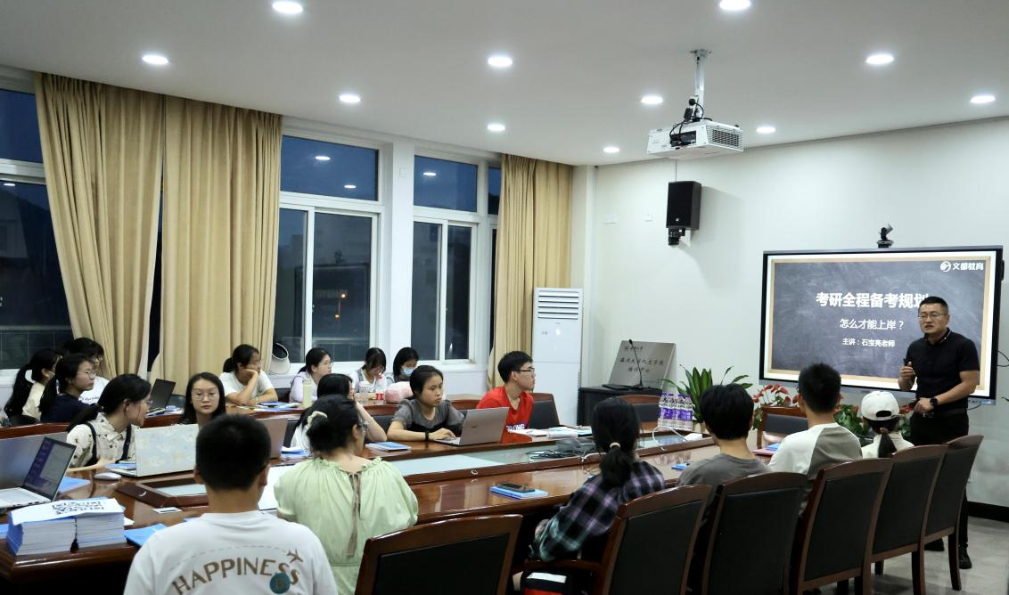为了让同学们对考研有更加深入的认识,明晰考研备考方向,6月5日晚上19:00,九色視頻 联合文都教育于人文楼213学术交流中心举办了2024年考研指导规划公益讲座。
