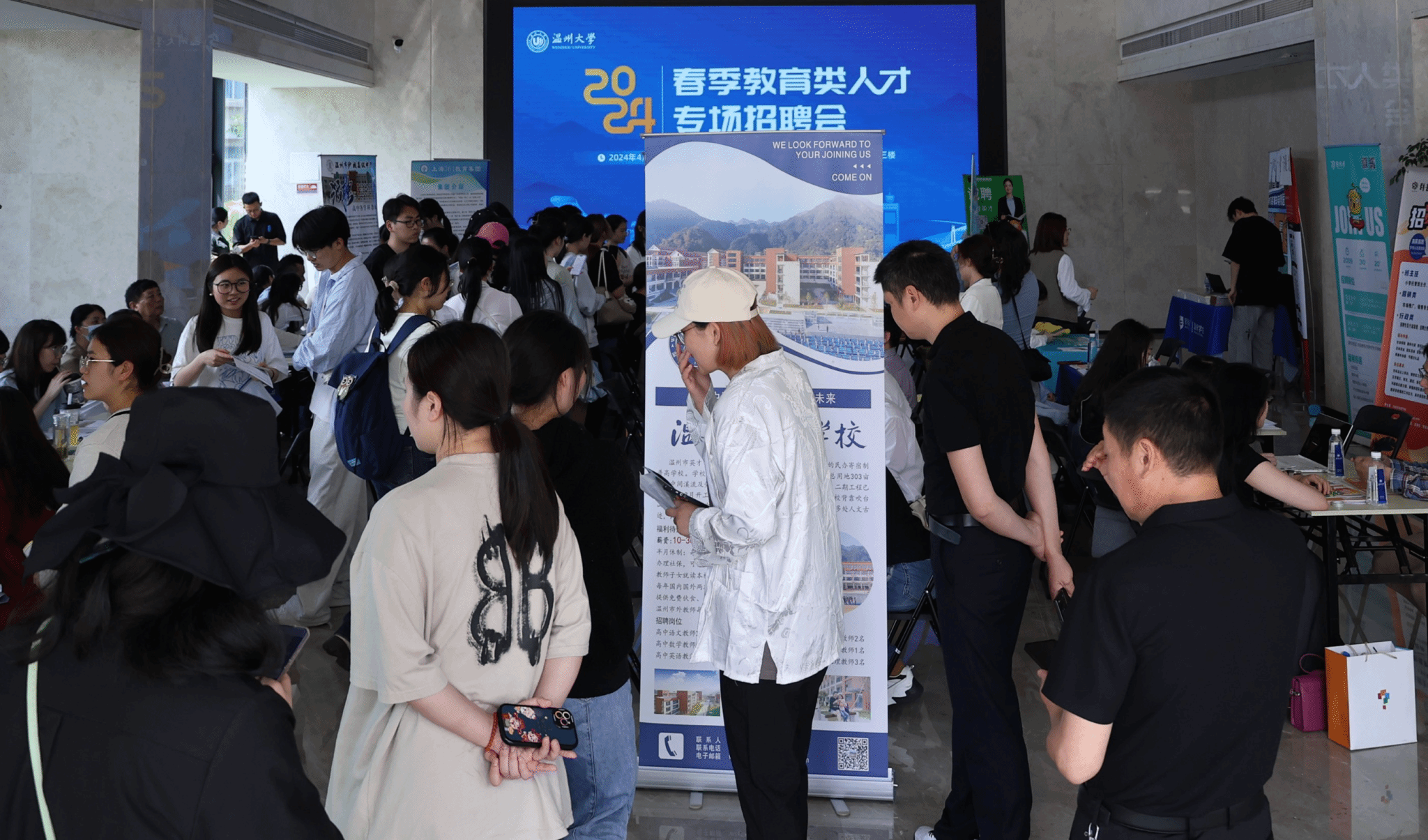 本次招聘会邀请温州市优质教育单位、杭州西子实验学校、义乌工学、宁波市城南中学、宁德国杰高级中学、北京学而思教育科技有限公司等90余家浙江省内外教育类用人单位到会,现场还特别挑选优质教育类岗位设“空中双选走廊”,线上线下招聘同步进行,为毕业生提供更多工作岗位和地点选择。