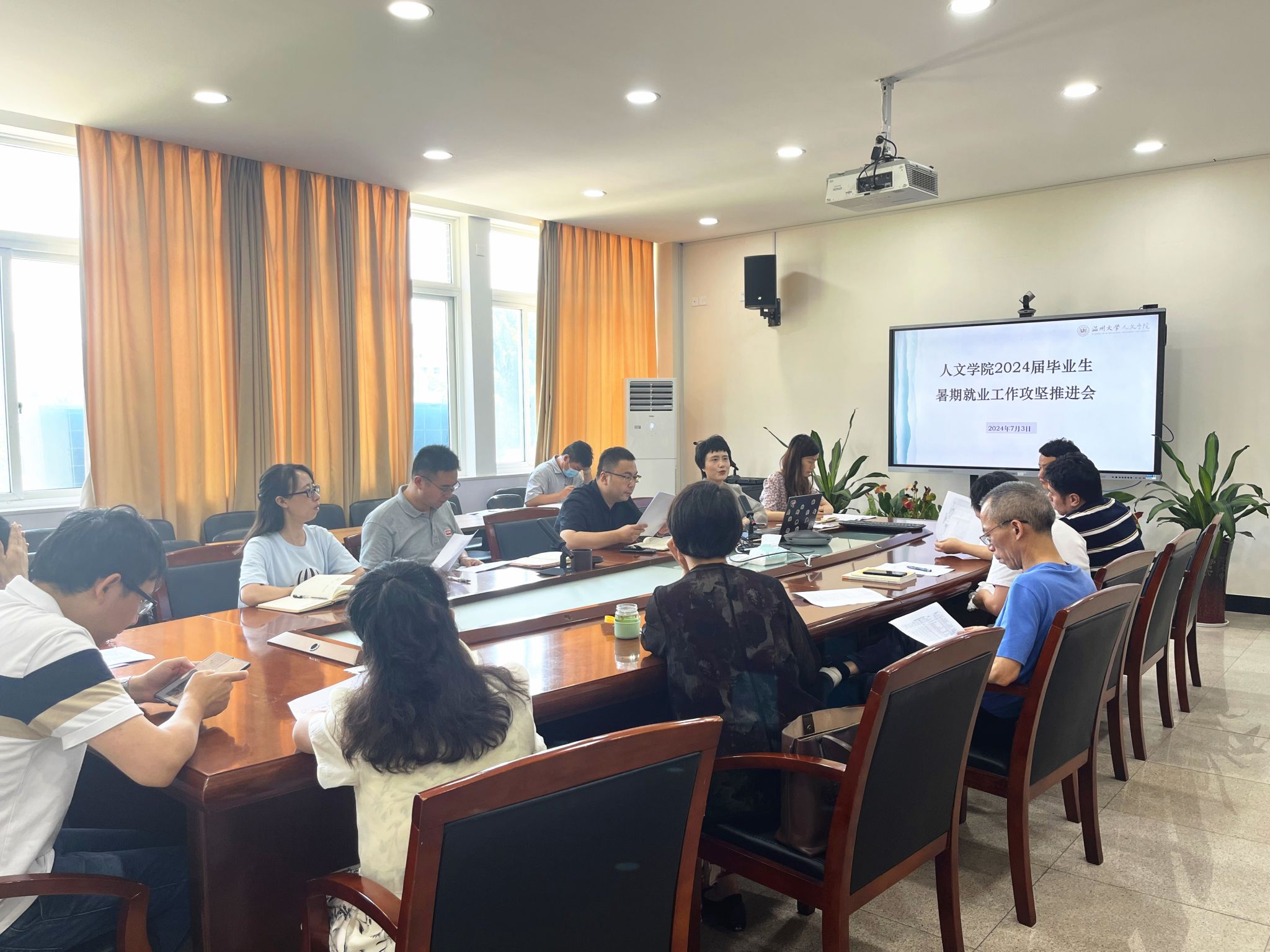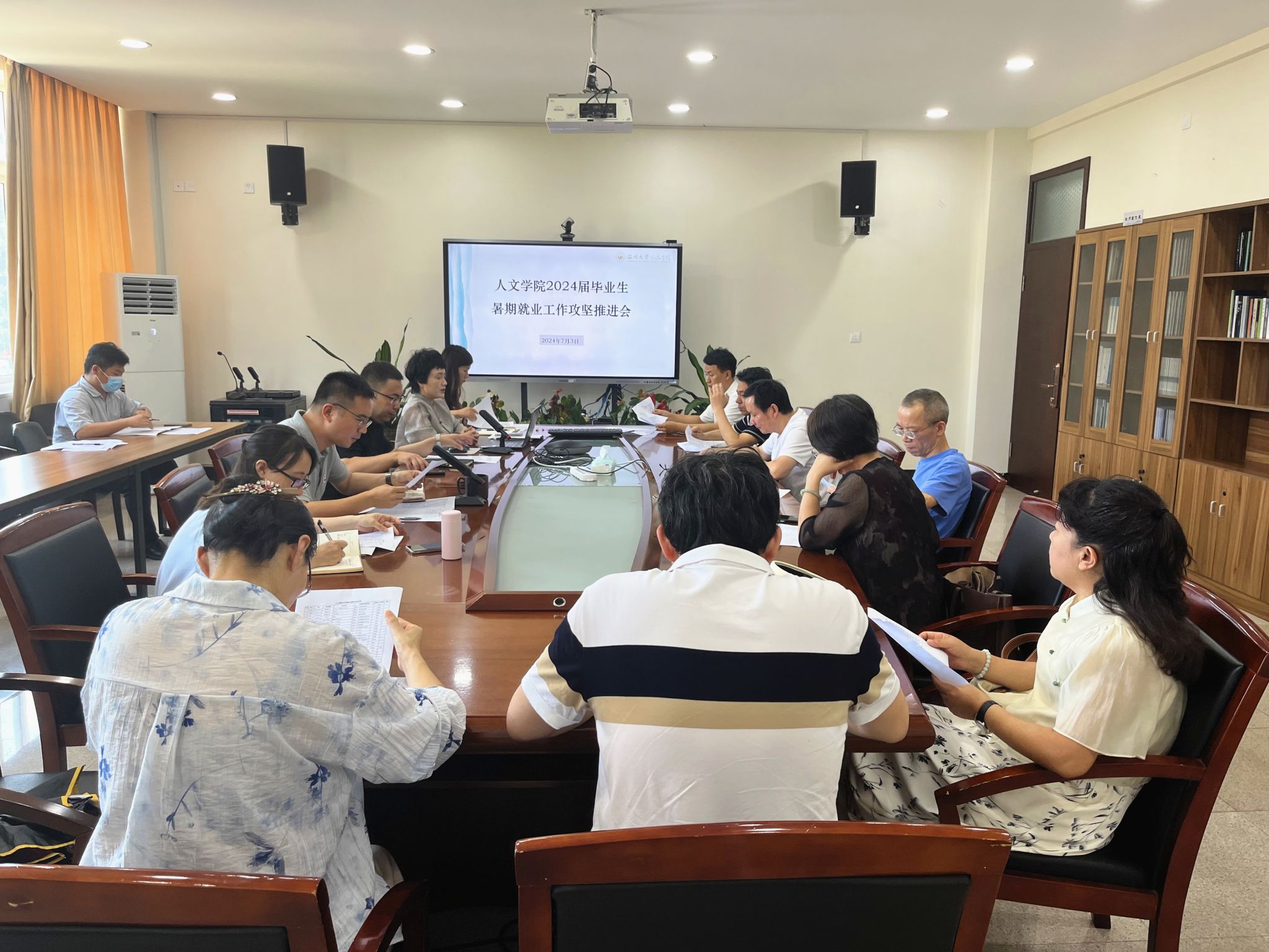 为进一步推动学院2024届毕业生就业工作,促进毕业生更高质量更加充分就业,7月3日下午,九色視頻 在人文楼213会议室召开了2024届毕业生暑期就业工作攻坚推进会,此次会议旨在深入贯彻落实教育部、省教育厅及学校关于高校毕业生就业工作的会议精神,抢抓就业冲刺期,明确后续工作重点,凝聚全院力量,共谋就业新篇章。学院领导班子全体成员、各专业系主任、硕士点负责人、毕业班班主任、学工办辅导员出席会议。会议由院党委副书记黄玮主持。