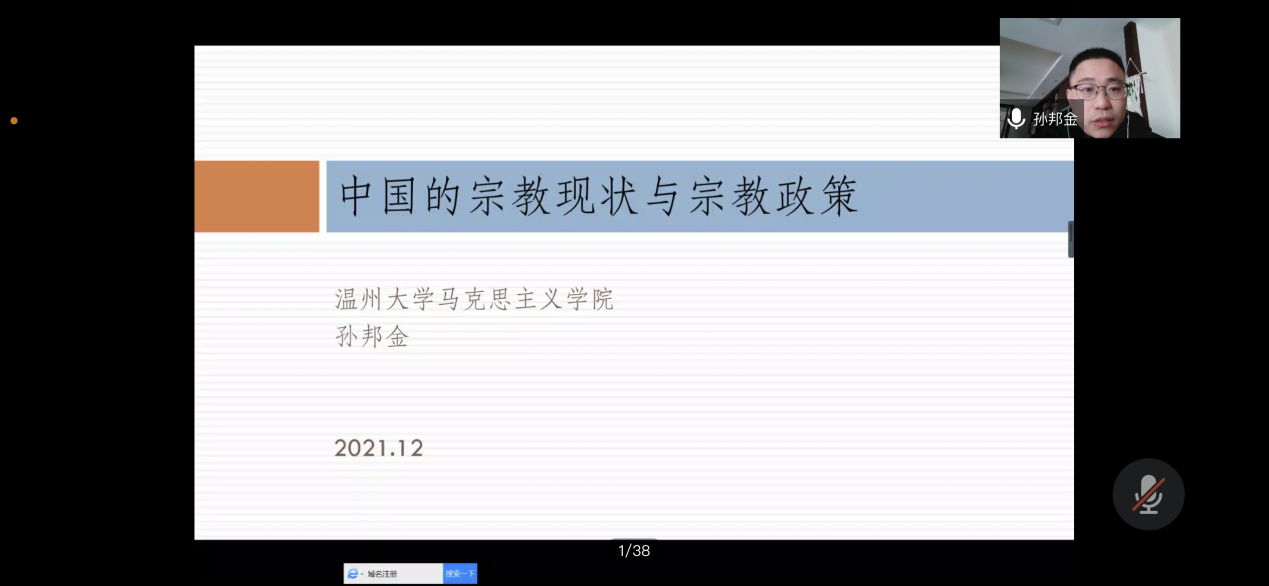九色視頻 马克思主义学院副院长孙邦金老师主讲。孙老师首先就目前我国宗教情况与历史渊源介绍了党的宗教工作基本方针与国家宗教管理的基本原则。随后,分别讲述了马克思主义宗教观的哲学基础、基本内容和马克思主义宗教观的中国化。最后,孙老师着重强调宗教问题无小事,尊重宗教信仰自由的同时要准确识别、远离邪教,提高自身防范能力。