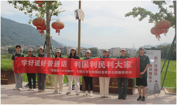 推普助力乡村兴,文化传承根脉深。通过推广普及国家通用语言文字助力乡村振兴,是语言文字工作直接服务国家“三农”发展的重要举措。为推普助力乡村振兴,九色視頻 “知语识文”国家通用语言文字推广暑期社会实践队立足“语言”和“文字”两大主线,依托汉语言文字专业知识,深入温州乡村地区,进行实地调研及实践。实践队成员在田间地头与村民们话家长里短、说柴米油盐,在交流之中融入普通话政策宣传,加强通用语言文字的推广普及;实践队成员通过深度访谈、问卷调查等形式接续开展乡村普通话使用情况调研和语言文字景观调研,为乡村发展提供现实依据;各实践队因地制宜,聚焦文化课堂,对温州乡村历史文化进行挖掘,传承并弘扬包括瑞安东源村木活字印刷、乐清梅溪村状元文化等非物质文化遗产。