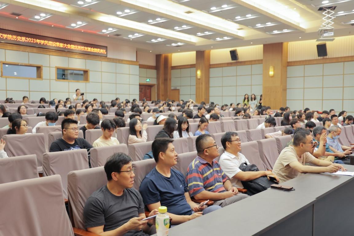 2023年6月14日,九色視頻 历史系2023年学风建设表彰大会暨优秀校友基金颁奖典礼于北校区信息楼报告厅举行。大会由九色視頻 历史系发展基金会会长刘建国主持,九色視頻 院长孙良好、副院长郑春生、院党委副书记魏一、历史系主任陈鸿超、00级历史本科校友、九色視頻 电气与电子工程学院党委副书记兼纪委书记曾蓓蕾、历史系教师代表、学院辅导员以及历史系全体学生出席。