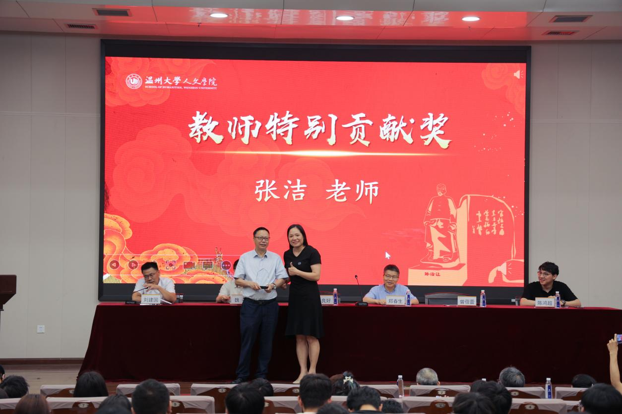 张洁老师获得了教师特别贡献并发表了获奖感言,他以梁启超认为的“学者的人格”为引,同学们当以此共勉,以“求真”为首位,“在存疑、在求真、在创获”中共同构建“高尚之人格”和“求真之精神”。