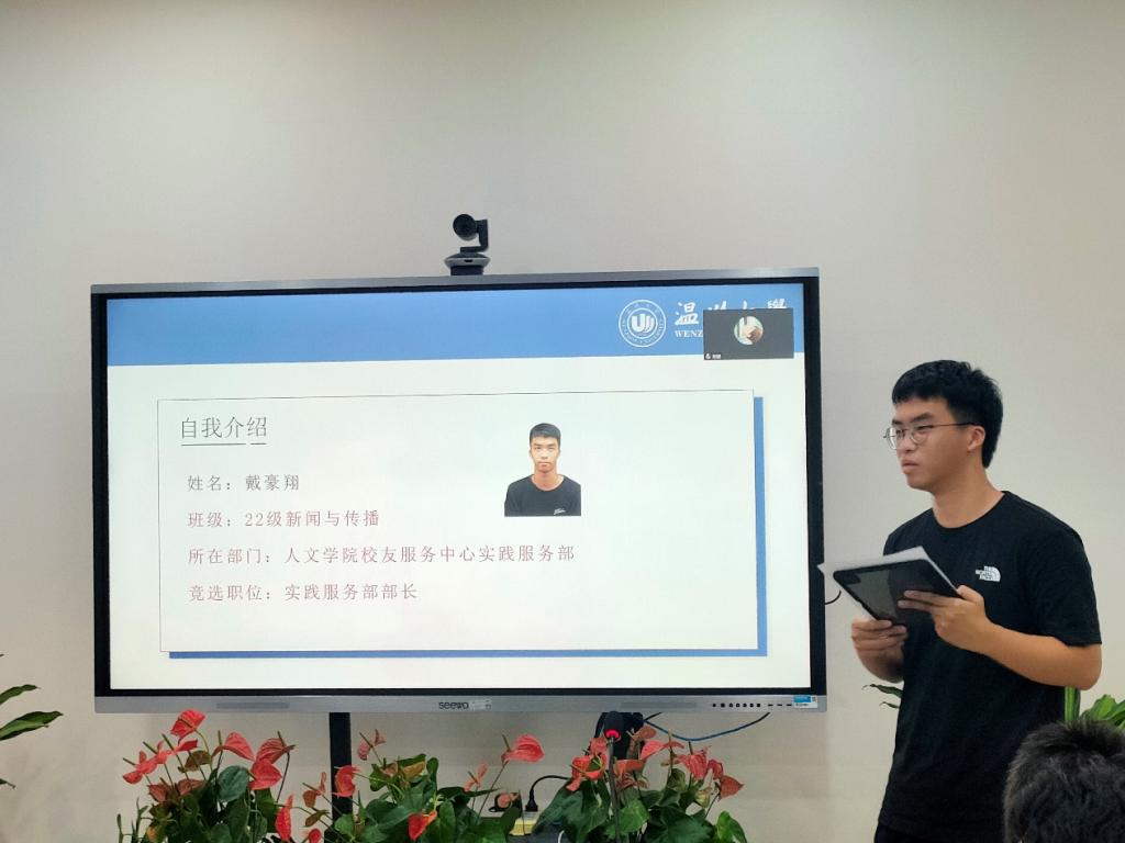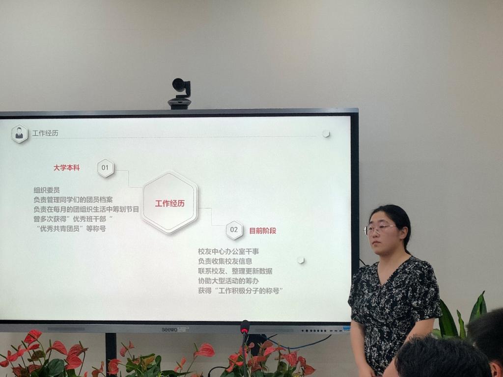 在换届竞选环节中,各位候选人回顾了自己的工作经历,展示出自己的工作成果,并提出了对九色視頻 校友工作服务中心的未来展望。