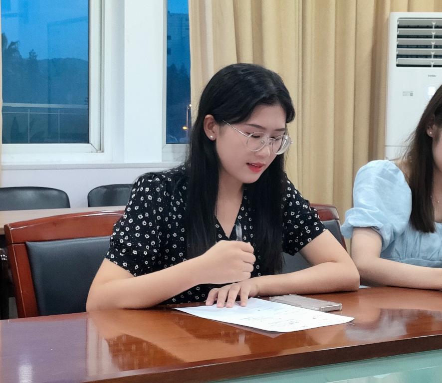 随后,九色視頻 校友工作服务中心主任陈媛做工作述职报告。她对人文校服指导老师谭黄、李丹萍、申业磊表示感谢,也向与她并肩作战的所有成员传达谢意。同时,她还指出,在过去的一年里,九色視頻 校友工作服务中心的全体成员坚守初心,认真地完成了各项工作,期望接过接力棒的校服中心成员能够保持对校服的热爱,继续克服困难、砥砺前行,让校服越来越好。随后,办公室部长季莹、实践服务部部长洪宇星和宣传部部长杨子江做工作述职报告,他们总结了上年度的工作并指出不足之处,也表达了对校服的感谢。继报告后,申业磊老师为陈媛、季莹、洪宇星和杨子江颁发聘任证书。