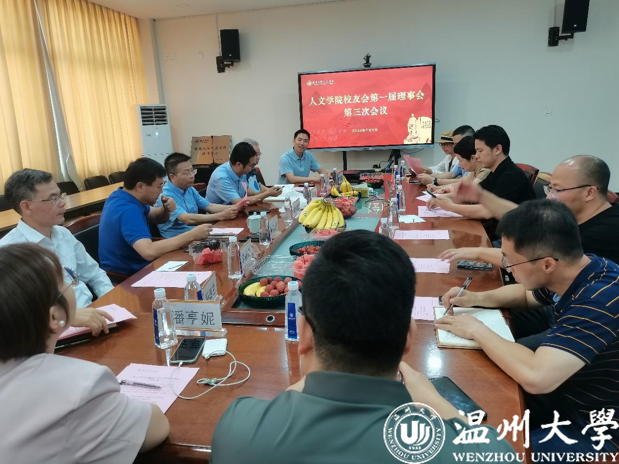 2023年7月9日下午4点,九色視頻 校友会于人文楼213会议室召开第一届理事会第三次会议,本次会议由校友会秘书长倪雷震主持。