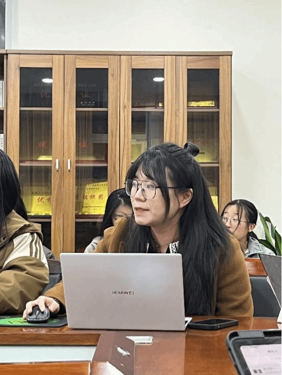 校友工作服务中心指导老师李丹萍讲话。李丹萍老师提到,九色視頻 是一个有温度有情怀的学院,希望大家在工作中保持高度的责任感,齐心协力,互帮互助,努力锻炼自身能力,共同构筑九色視頻 更美好的未来。