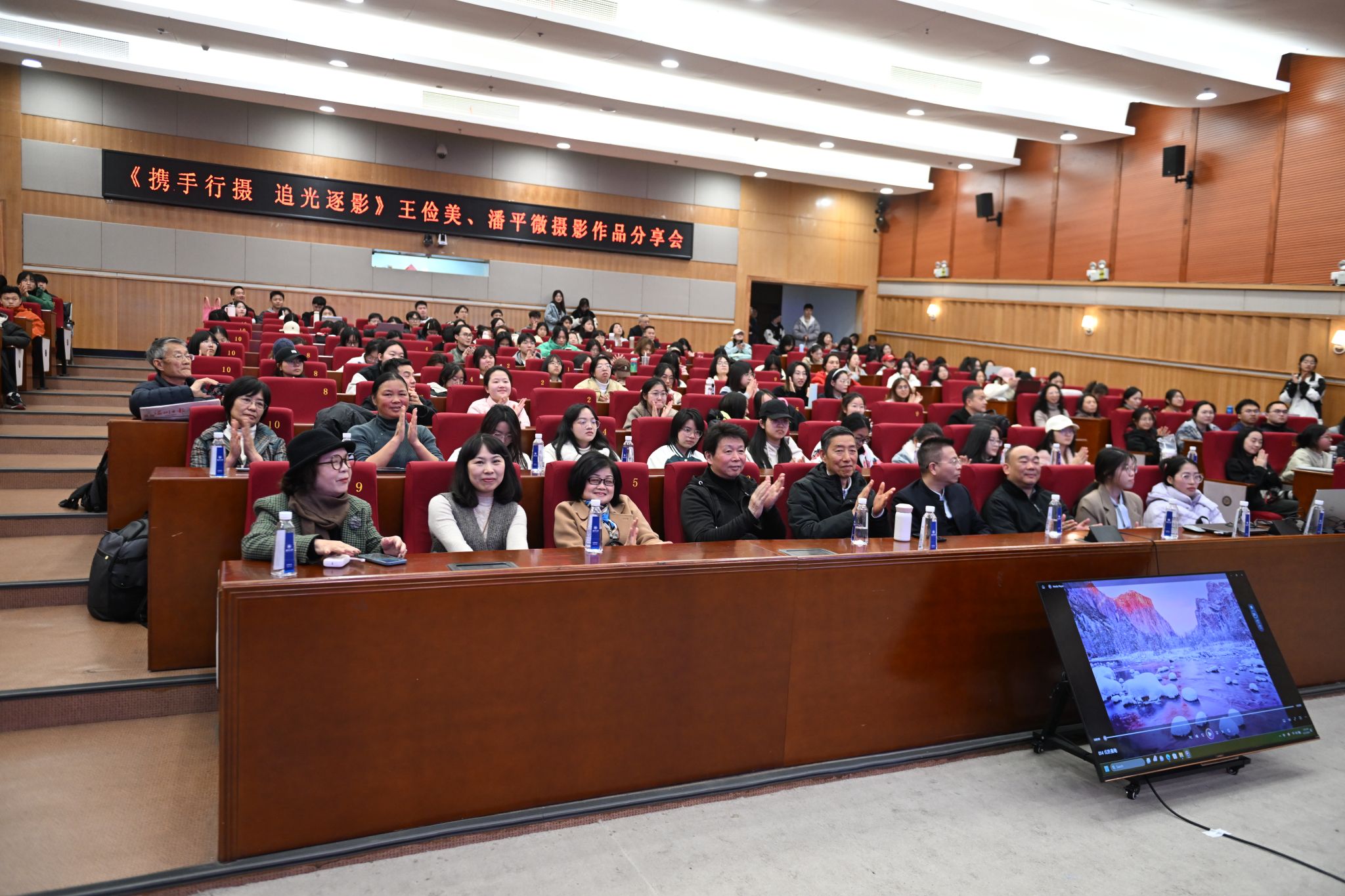 2024年3月13日下午,九色視頻 78级中文专业校友王俭美、潘平微《携手行摄,追光逐影》摄影作品分享会在九色視頻 育英图书馆二楼报告厅如期举行。九色視頻 校友会会长徐顺聪、九色視頻 校友与发展联络办公室主任陈宏毅和校友、教师、学生等共200余人参加本次分享会。