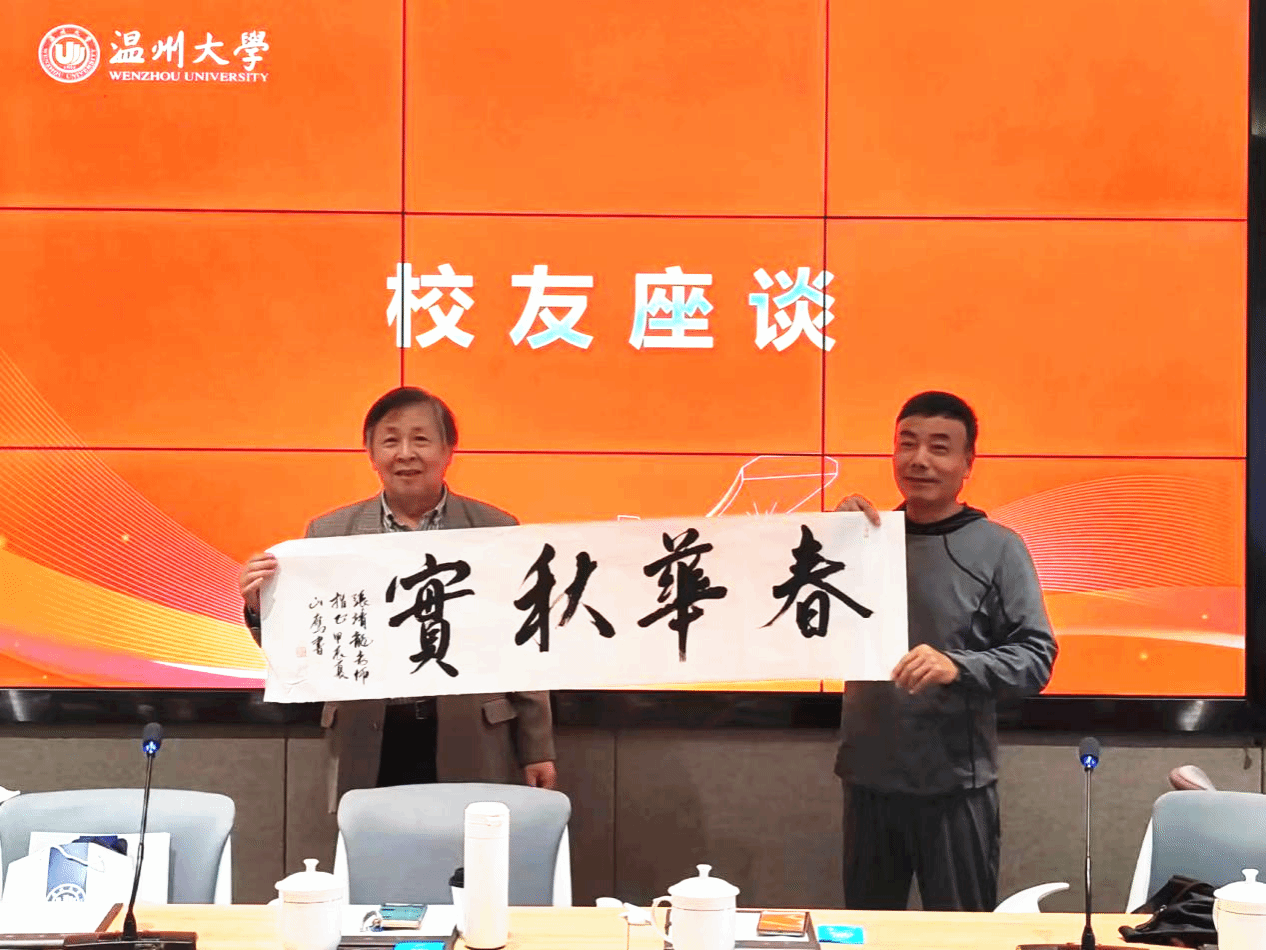 赠书仪式上,校友代表向母校捐赠书本,希望能以这一份书香墨韵,温润温大人文情怀,并对母校的关心与热情接待表达由衷的感谢。