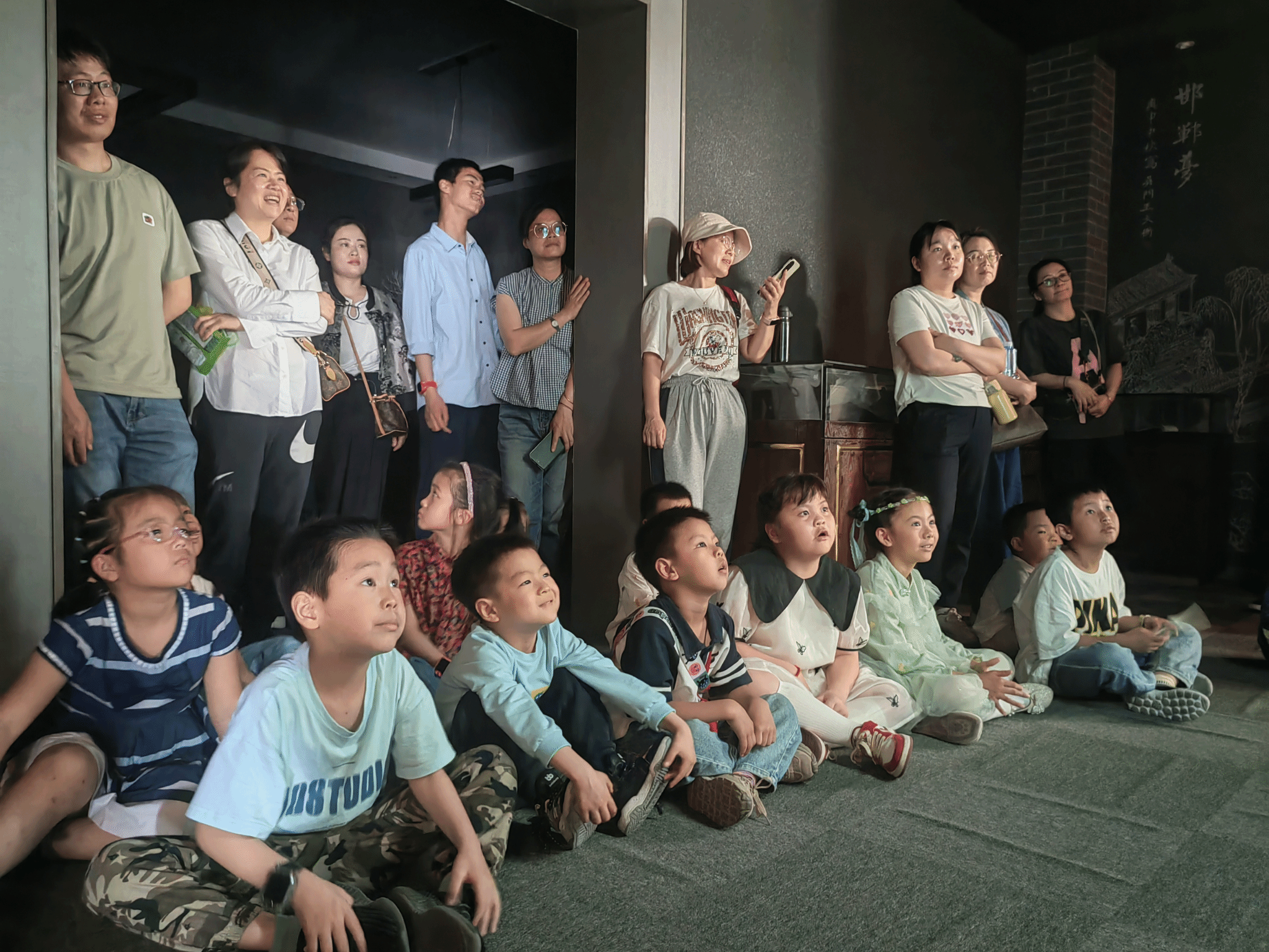 校友及孩子们相聚于浙江传统戏曲研究与传承中心,在讲解老师的引导下,深入了解了南戏的起源和发展历史。孩子们被中心内丰富的戏曲文物、珍贵的历史资料所吸引,不时发出赞叹之声。看到精美的戏曲服饰,孩子们纷纷按捺不住好奇的心,进行了体验穿戴。大家戴着做工精巧的头饰,切身感受着南戏艺术的魅力。在全息影像展示中,精彩的南戏角色表演吸引着孩子们全身心观看,沉浸于南戏的艺术魅力中。讲解老师的生动讲述和一件件展品勾勒出的南戏文脉,让大家深刻地感受到了南戏作为中国戏曲艺术瑰宝的独特魅力和深厚底蕴。