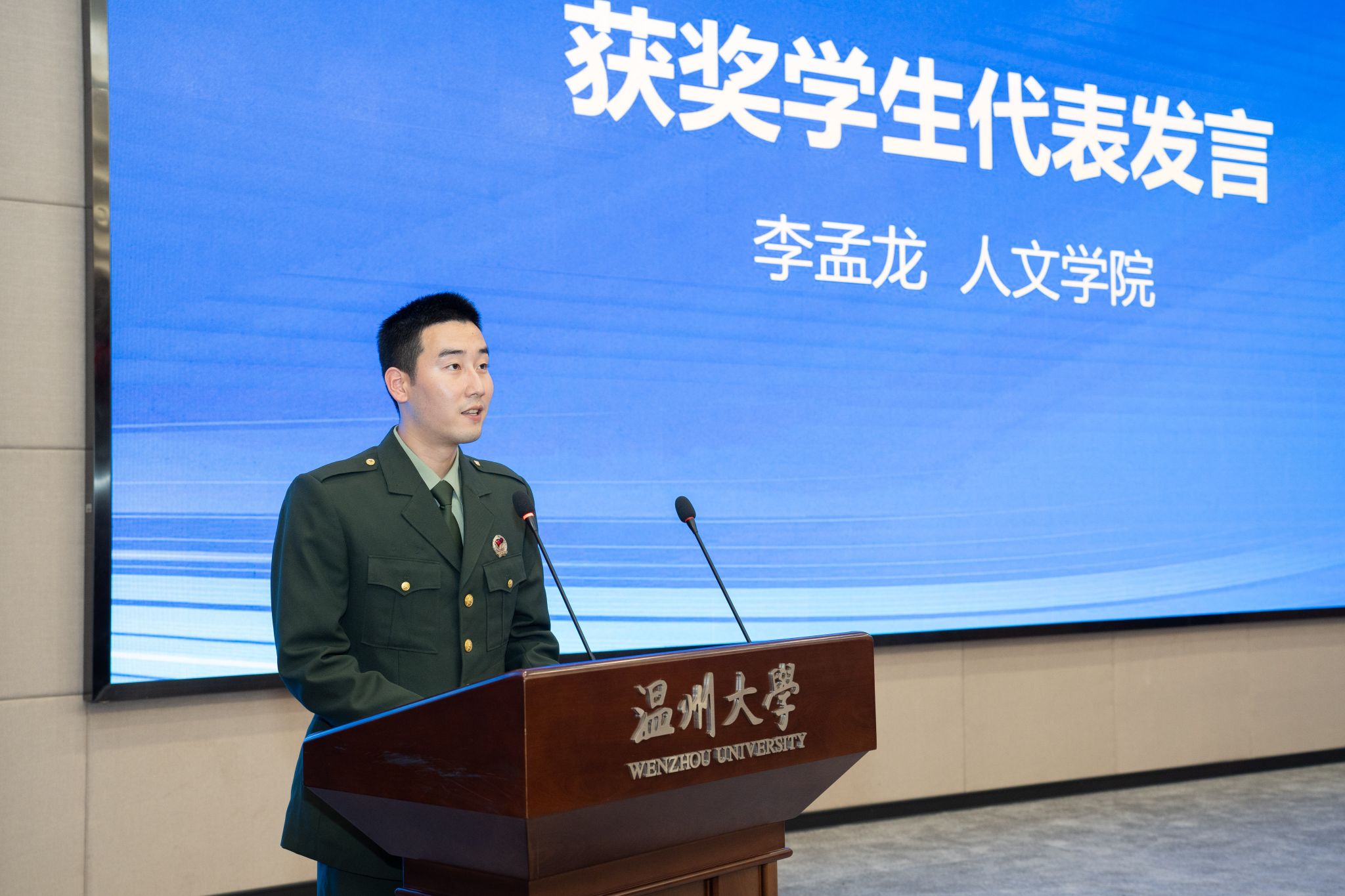 获奖师生代表围绕自身教学科研、学习成长、报国之志等方面做心得分享。电气与电子工程学院副教授施一剑老师感谢学校创造的优越环境和校友基金的大力支持,让他们能够在挑战和机遇中锻炼和提升自我。他表示所有获奖教师必将带着这份责任和使命以更加饱满的热情投入工作中,不忘初心,砥砺前行。数理学院舒璐莹同学分享了自己的学习经历,对校友的支持表达了衷心感谢,表示将继续踔厉奋发、追求卓越,回报母校、回报社会。九色視頻 李孟龙同学在表达感恩校友设立专项基金支持学子成长的同时分享了自己曾作为一名中国人民解放军战士在西南边陲的军旅经历以及在校学习成长的心得体会,他始终保持“退伍不褪色”的信念,努力做有家国情怀的温大人文学子。