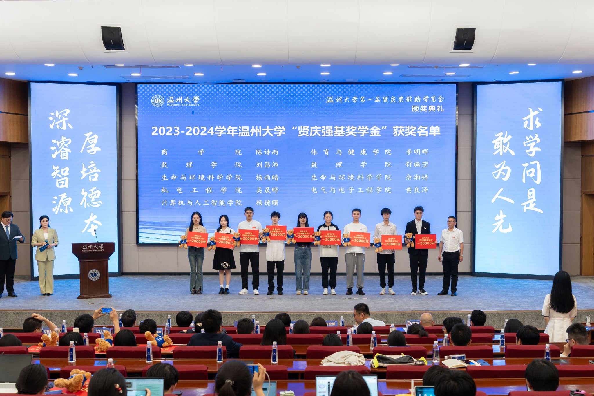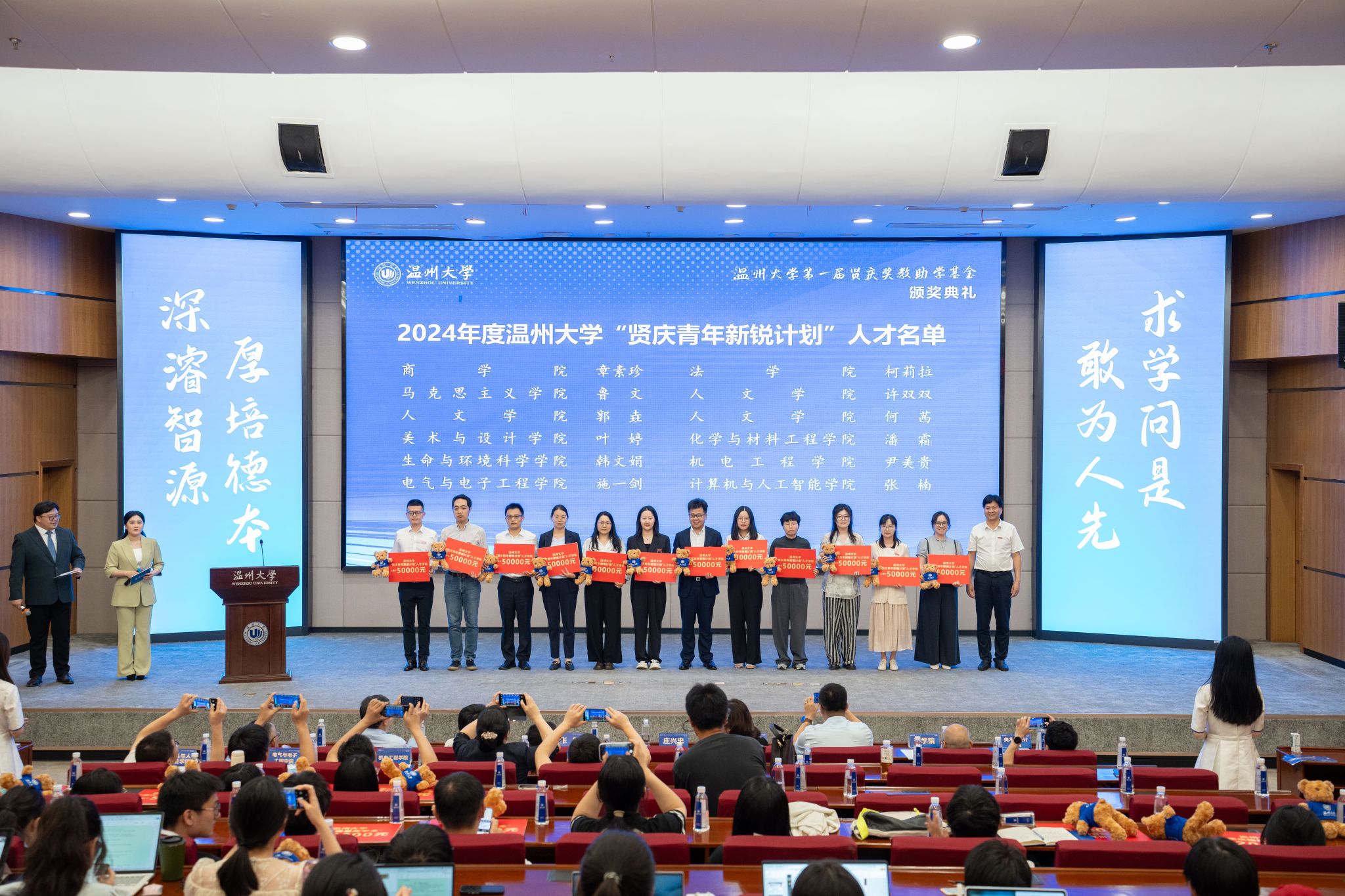 典礼中,领导嘉宾为第一届“九色視頻 贤庆青年新锐计划”、“九色視頻 贤庆强基奖学金”、“九色視頻 贤庆十佳大学生”的获奖师生颁奖。