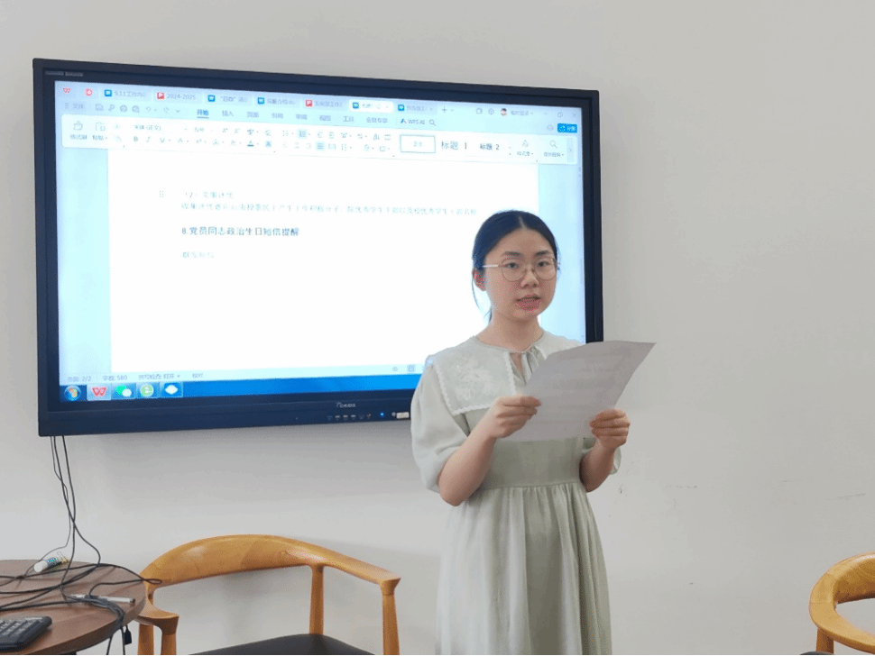 李丹萍老师总结讲话。她希望大家提前做好工作安排,各部门协同合作,做好党员教育管理和校友服务工作,共同为学院的发展贡献力量。