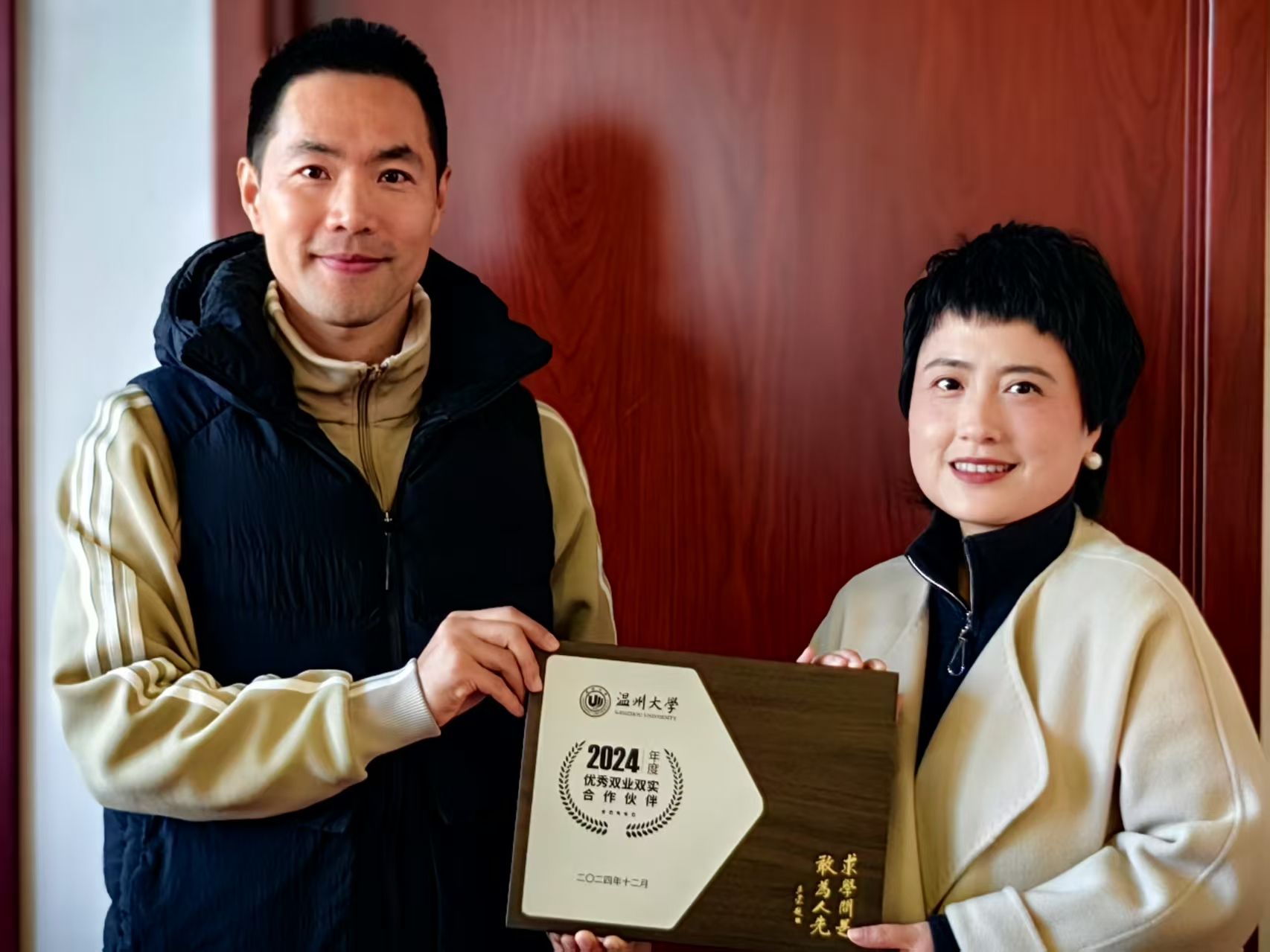 江秀景代表学院向校友们致以诚挚的问候与新春的祝福,并亲手送上学院精心准备的礼品和满载深情的感谢信。此外,学校还特别邀请了书法名家创作书法作品,作为礼物赠予校友,以此表达学校和学院对校友们的深深敬意和美好祝愿。黄玮为倪雷震创办的企业颁发了2024年度校优秀双业双实合作伙伴证书,感谢其为学校学生就业工作作出的贡献。
